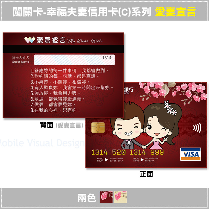 幸福夫妻信用卡C系列(紙卡非厚板)-愛妻宣言(兩色可選) (新品上市特價中) |