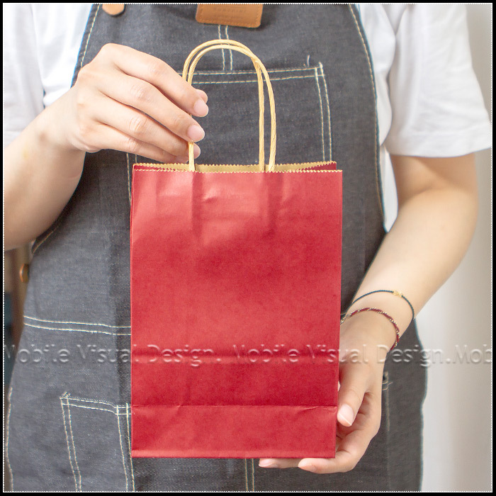 手提牛皮紙袋(紅色 15X20X8cm)小手提袋(禮物包裝袋) |