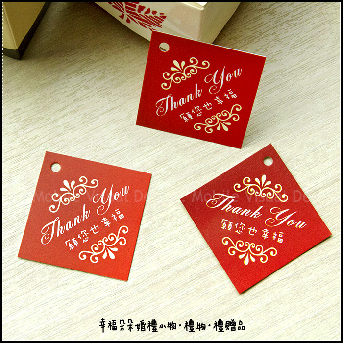 禮物小吊牌3.5X3.5cm(方形H款-Thank You 願您也幸福) -零售-不含其它配件 (新品上市特價中) |