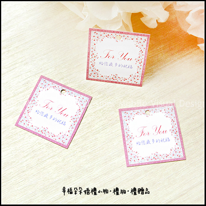 *禮物吊卡包裝3.5X3.5cm吊牌-方形K款, 印有「Thank You 給您最多的幸福」字樣,適合包裝裝飾任何禮物喔。