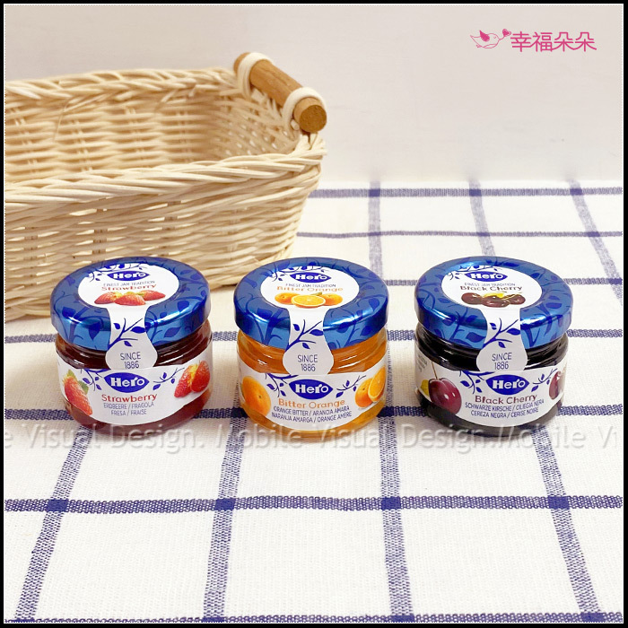 零售單瓶(無包裝款):瑞士進口hero藍蓋多口味小果醬 28g (新品上市特價中)