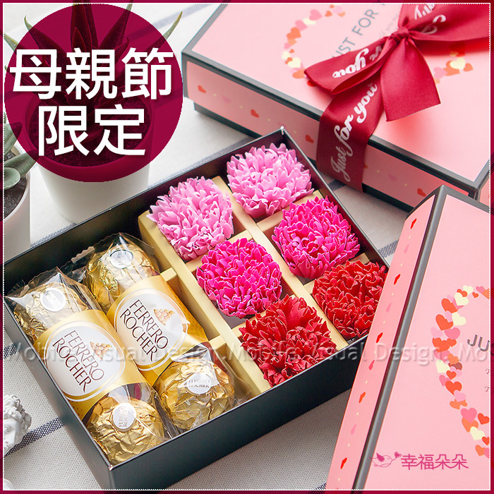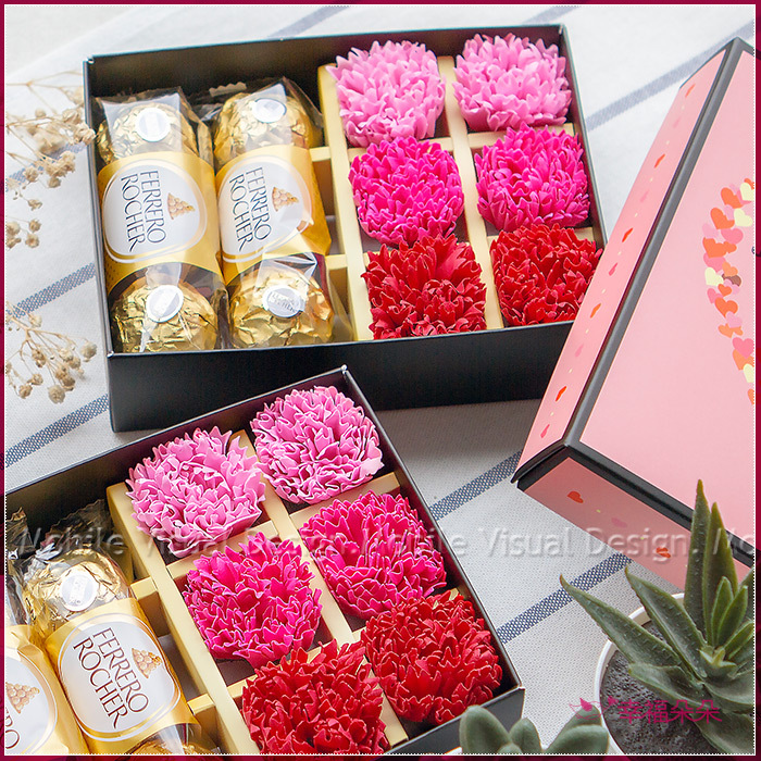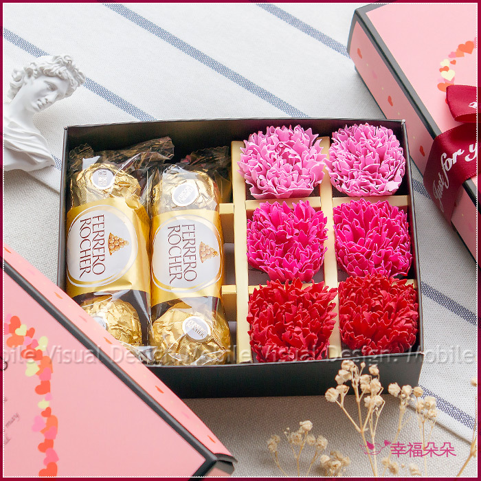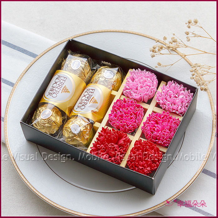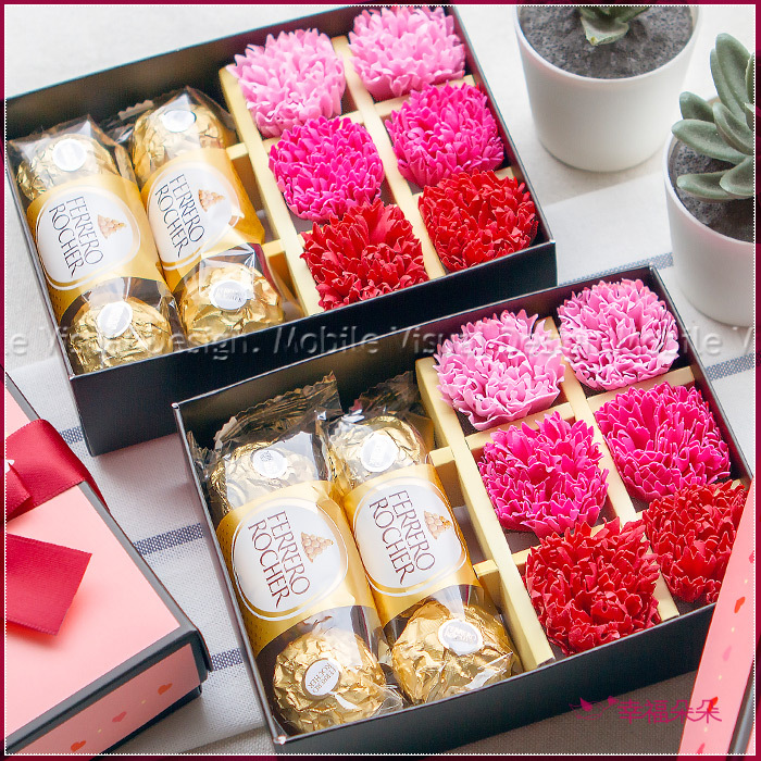 母親節限定–金莎巧克力6顆入+6朵康乃馨香皂花禮盒–紅色 (新品上市特價中)