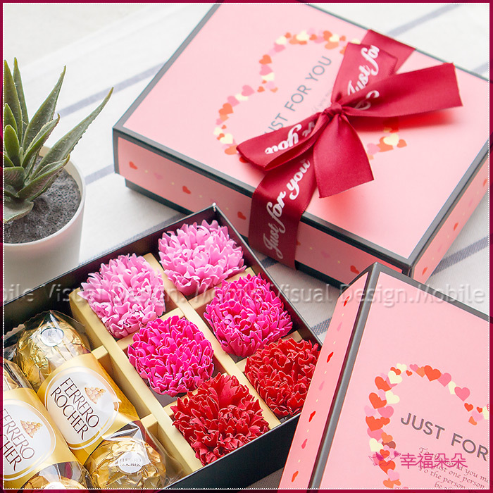 每組禮物盒均附有:6顆金莎巧克力 + 6朵康乃馨香皂花 ☝☝☝☝ 留意!!! 此賣場僅販售 紅色 系列玫瑰香皂花 ☝☝☝☝
