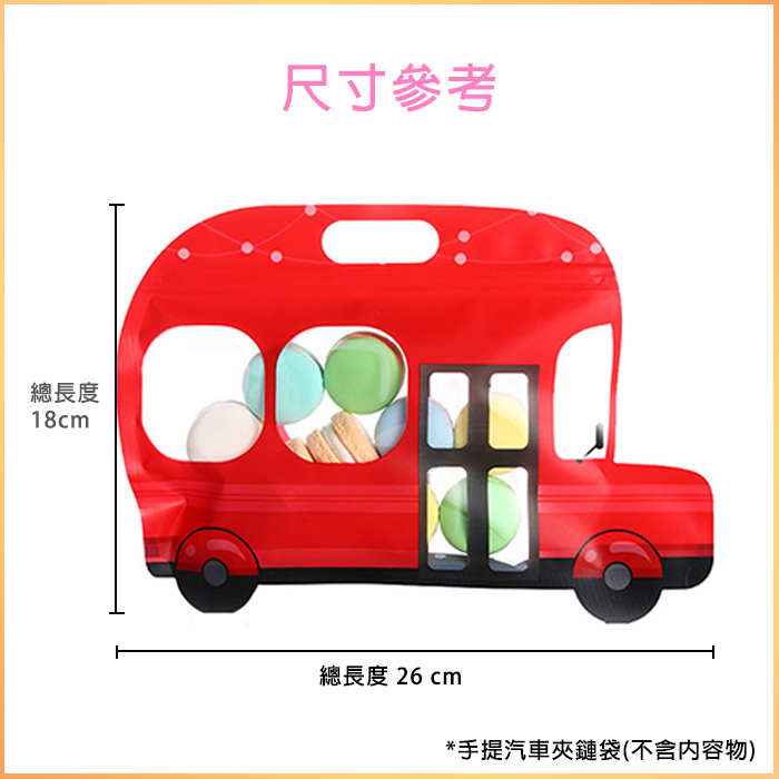 超可愛小汽車造型夾鏈袋自行裝入喜歡的餅乾糖果❤ 不論場合,於婚宴、生日、情人節、聖誕節等活動送朋友都hen棒唷😊 讓您的小禮物更加溫暖、溫馨🥰 小朋友大朋友收到肯定愛不釋手~小編推推👍 共有四總顏色可選:紅、黃、藍、綠 *請留意:此賣場僅販售糖果夾鏈袋均不含內容物及任何配件!
