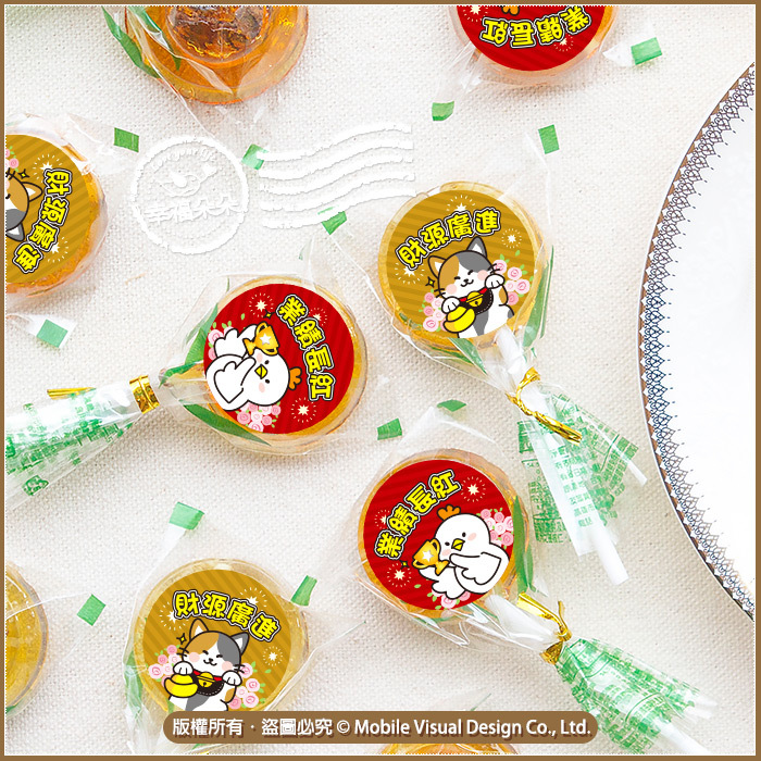 古早製法懷舊梅子棒棒糖, 一口含下時立刻喚起兒時記憶😋 甘甜的麥芽搭上酸甜滋味的話梅, 傳統風味,愛不釋手🫣 每支貼有幸福朵朵獨家電繪設計3cm貼紙! 共有②款可挑:業績長紅(小雞款)、財源廣進(招財貓款) 非常俏皮可愛喔🧡 作為禮物贈送都絕對是超棒的祝福喔。