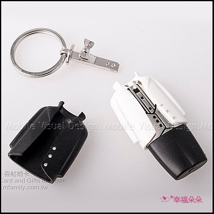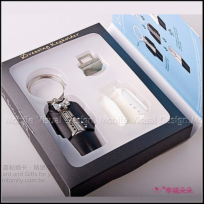 *衣服上有三顆美鑽,可替鑰匙圈更換衣服,還附時尚手提包哦! *將環狀鑰匙圈向上拉起即可穿掛鑰匙! *附贈精美禮盒