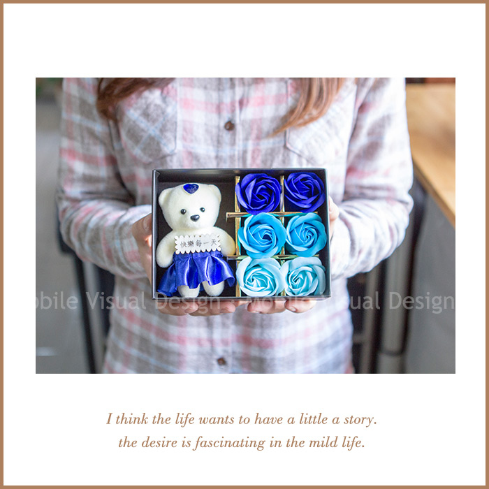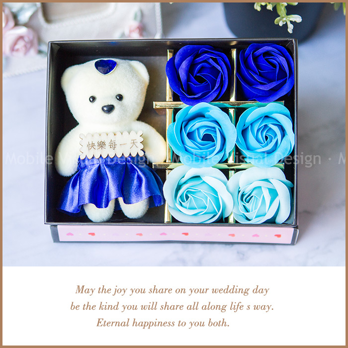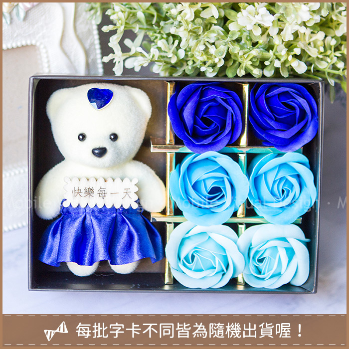 小熊+6朵玫瑰香皂花禮盒-藍色 (新品上市特價中) |