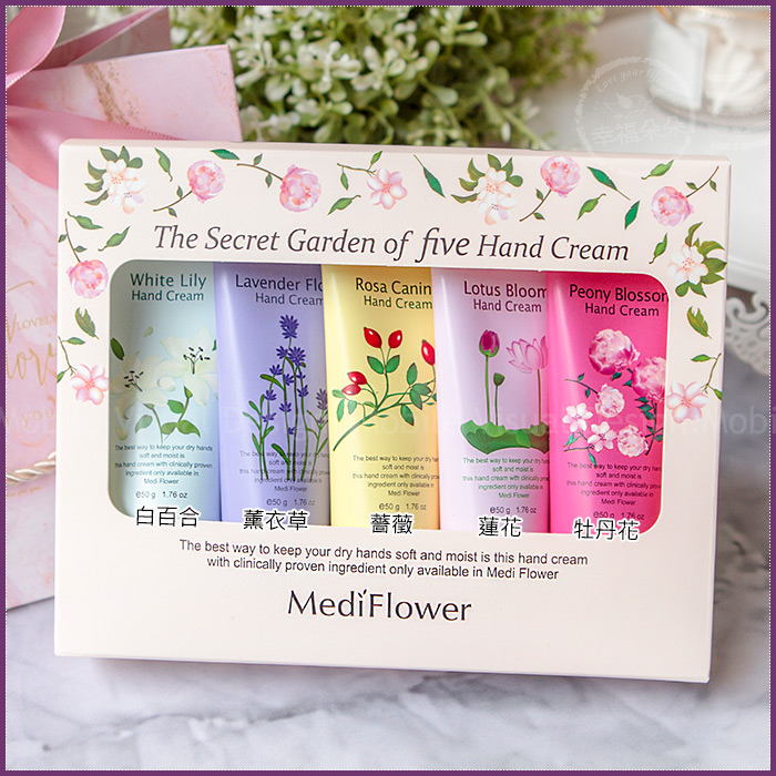 韓國 Medi Flower 秘密花園護手霜禮盒(盒裝5條入)-附贈提袋