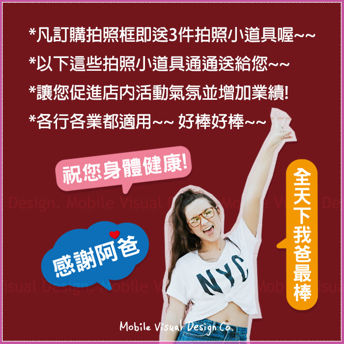 ☝另外還有阿爸專屬手拿板喔! 歡迎搜尋↓↓↓ *小道具讓拍照變有趣了! 用途:爸爸慶生用、家庭派對、店家打卡拍照、聚餐合照!