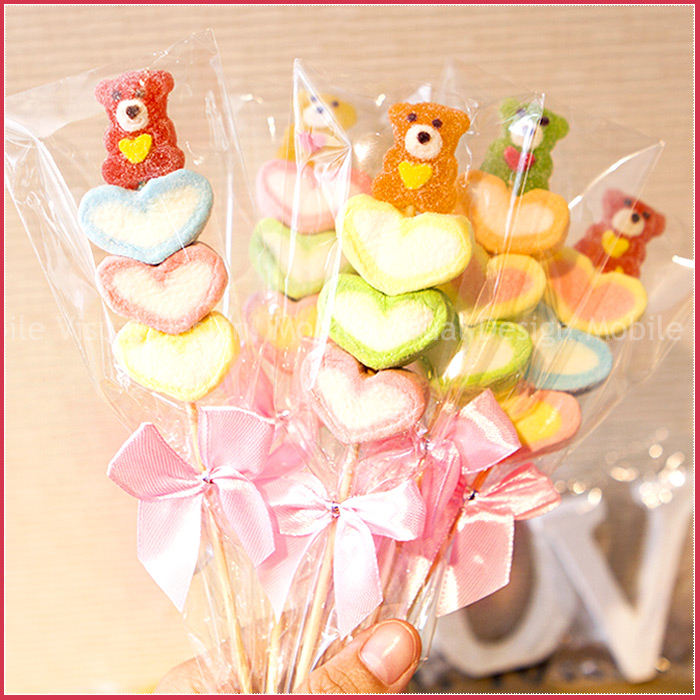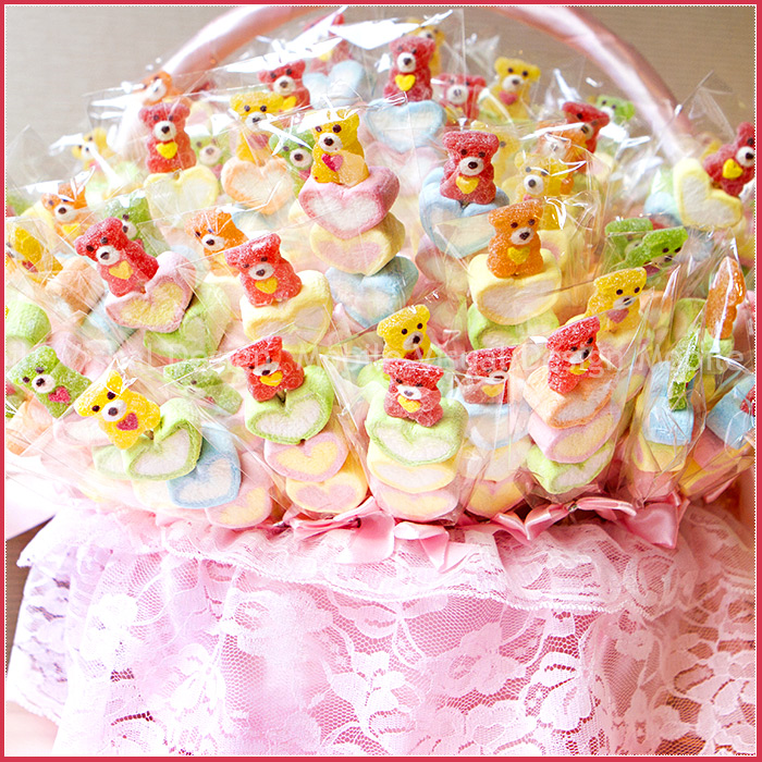 QQ小熊軟糖+愛心棉花糖串X150支+大提籃X1個(限宅配)