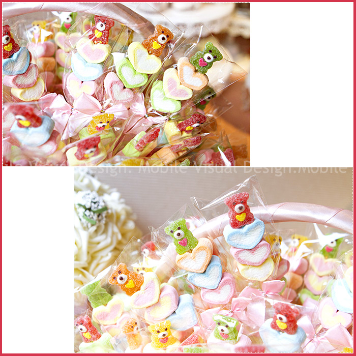 *此組合內含:QQ小熊軟糖+愛心棉花糖串X150支+大提籃X1個 *軟Q香甜的小熊造型軟糖+愛心棉花糖串,大人小孩都愛! *我們的愛心棉花糖是由三種顏色串起的喔,蝴蝶結更是不計成本裝飾