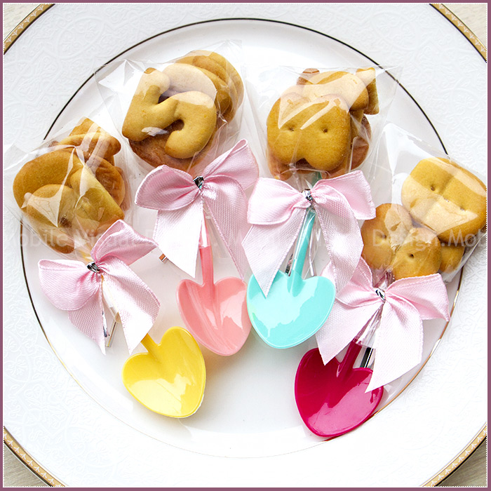 【商品特色】 *五顏六色的迷你愛心鏟子搭配數字餅乾,非常好吃喔^_^ 鏟子諧音「產子」,象徵百年好合、早生貴子,是很特殊又吉祥的小禮呦!