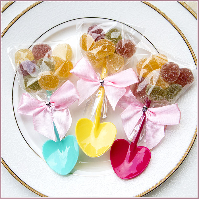 【商品特色】 *五顏六色的迷你愛心鏟子搭配QQ軟糖,非常好吃喔^_^ 鏟子諧音「產子」,象徵百年好合、早生貴子,是很特殊又吉祥的小禮呦!