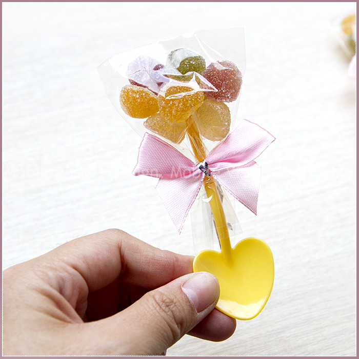 【商品特色】 *五顏六色的迷你愛心鏟子搭配QQ軟糖,非常好吃喔^_^ 鏟子諧音「產子」,象徵百年好合、早生貴子,是很特殊又吉祥的小禮呦!