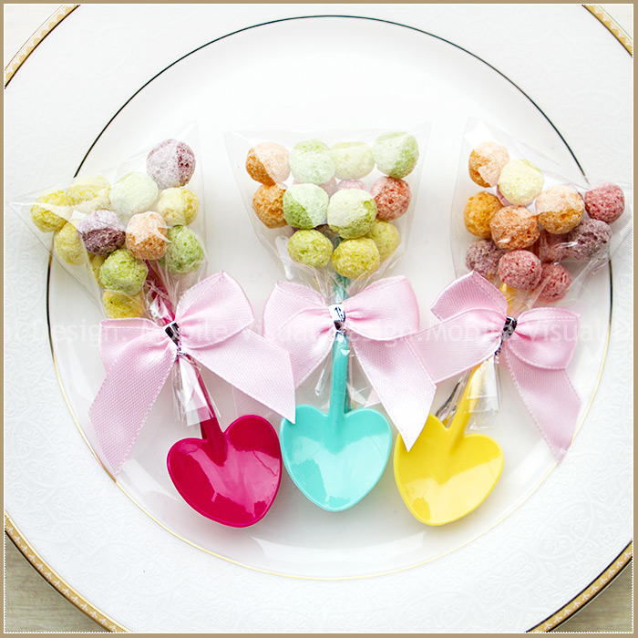 【商品特色】 *五顏六色的迷你愛心鏟子搭配五彩球餅乾,非常好吃喔^_^ 鏟子諧音「產子」,象徵百年好合、早生貴子,是很特殊又吉祥的小禮呦!