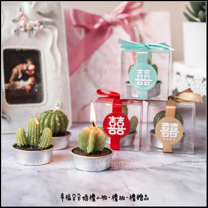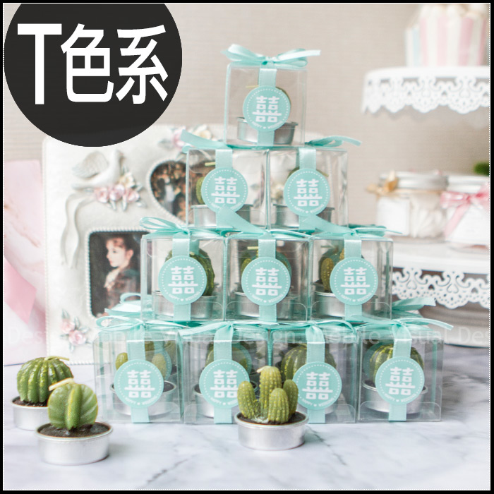 婚禮小物-透明盒裝「囍字」療癒多肉仙人掌蠟燭 (3色系可挑,蠟燭隨機) (新品上市特價中) |