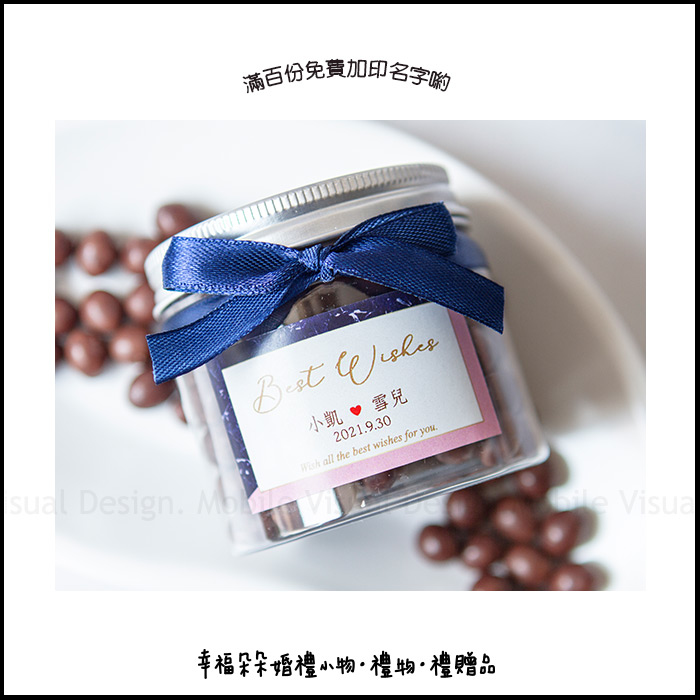 純手工精製,此款超多人愛吃的~ 吃起來脆脆香香、濃濃巧克力味是童年的回憶ㄛ😋 不管是當點心、小零嘴都很適合, 快來收服孩子們的胃吧🧡 更是派對、餐會的最最首選👍 每份都有透明罐裝,並都貼有幸福朵朵獨家設計精美貼紙, 訂滿100份還可以免費印名字喔!(若有需要,請在下單時 就備註好要印的名字喔!沒有備註就會用公版貼紙喔!) 讓客人印象深刻!真是特別的客製小禮物👍 你們的用心一定要讓大家感受到! 在小地方多一點點的用心🧡 就可以讓親友感受到多一點點的心意呢! *若時間足夠,建議可提前7-14天以上預訂 (急用者請先詢問時間~亦可趕件)謝謝您!! 採接單後新鮮包裝,保存期限有半年以上 *每罐約80g *保存方式:存放於乾燥陰涼處即可 *保存期限:至少半年以上 最佳賞味期2~3週內 *當送客喜糖、二次進場禮、工作人員的感謝禮、婚企活動禮、婚禮抽獎、婚禮會場佈置、工商來店禮、自用,增添許多浪漫的氣息喔.........。