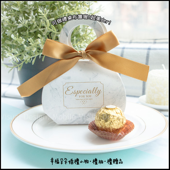 最佳賞味期2~3週內 *每組含:金莎1顆+(金緞)大理石紋盒1份 (喜糖盒需自行DIY.DIY教學詳情請參考圖8) *當送客喜糖、二次進場禮、工作人員的感謝禮、婚企活動禮、婚禮抽獎、婚禮會場佈置、工商來店禮、自用,增添許多浪漫的氣息喔.........。 *為讓商品完整地送至您手中,我們會做好保護,再做配送喔! (此商品已包裝好才寄送給您唷~~)