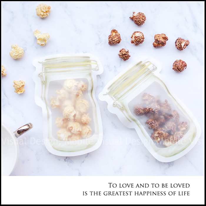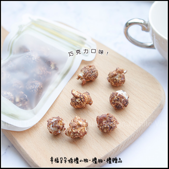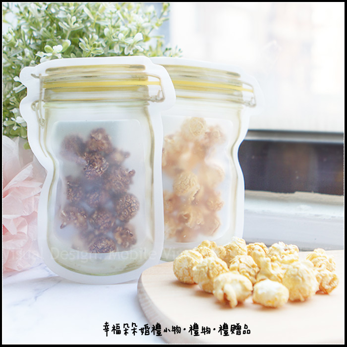 Stay Home宅在家必備! 解饞零食爆米花 越吃越涮嘴,男女老幼都喜愛! 讓你越吃越涮嘴的爆米花,男女老幼都喜愛 小小迷你包的爆米花! 用小梅森瓶造型夾鏈袋裝著,可愛極了! 最適合生日分享,發送給同學唷~ 婚禮上發給賓客享用也很適合喔!