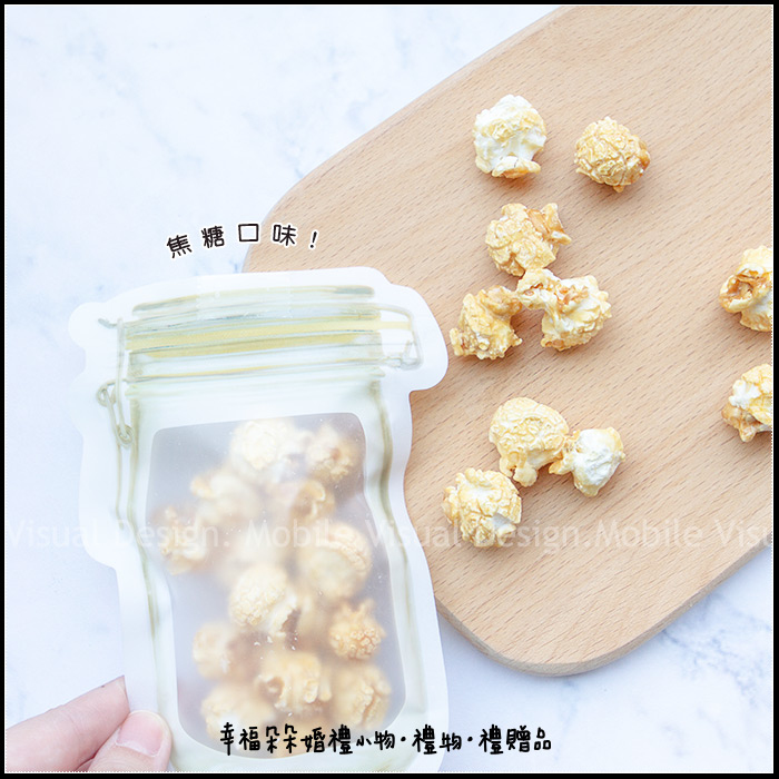 [活動生日分享]爆米花10g入(焦糖及巧克力2口味可選)-黃色梅森瓶造型夾鏈袋裝 (新品上市特價中) |
