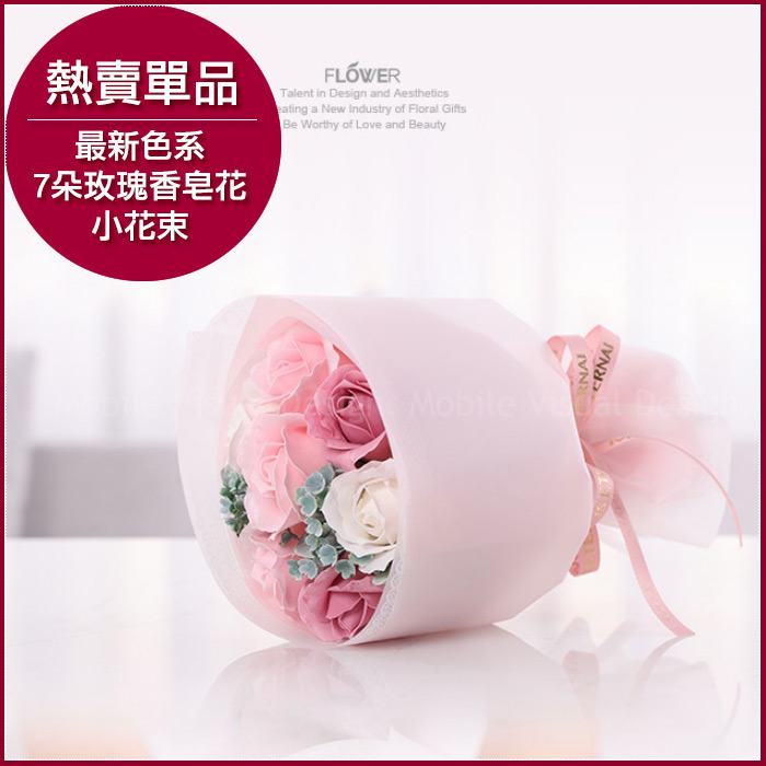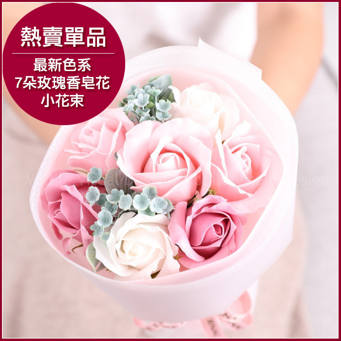最新色系 7朵玫瑰香皂花小花束(初戀粉) (新品上市特價中) |