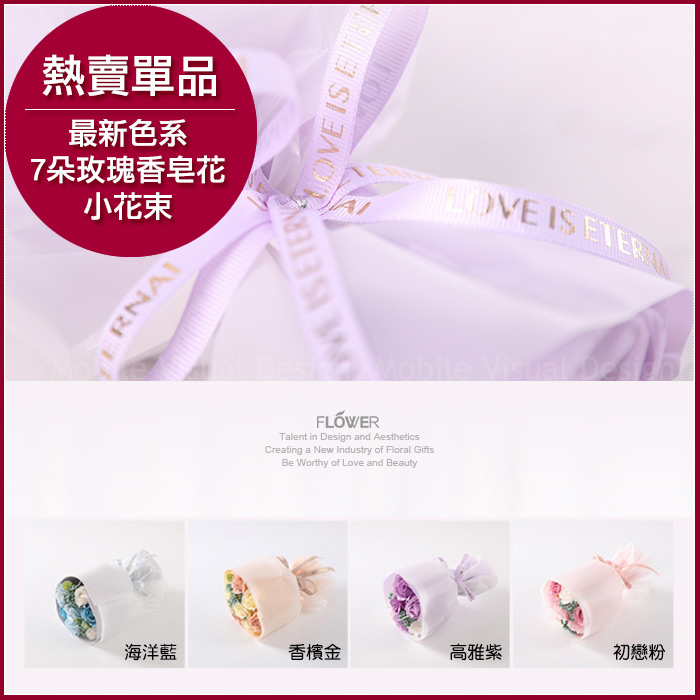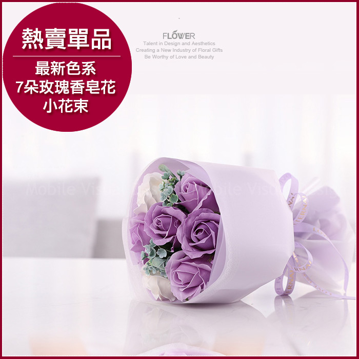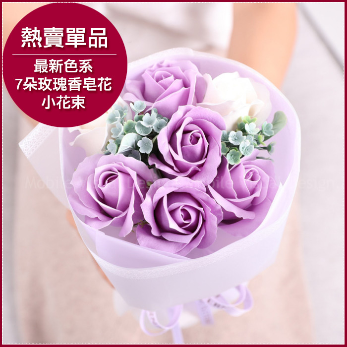 最新色系 7朵玫瑰香皂花小花束(高貴紫) (新品上市特價中) |