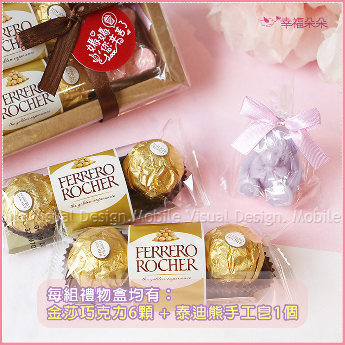 母親節禮物贈品 金莎巧克力6顆入+泰迪熊香皂禮盒(媽媽您辛苦了) (新品上市特價中)