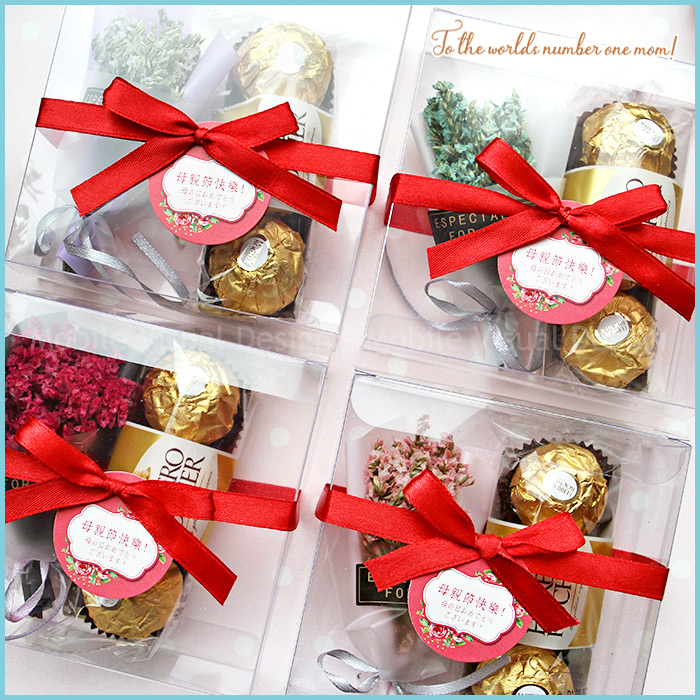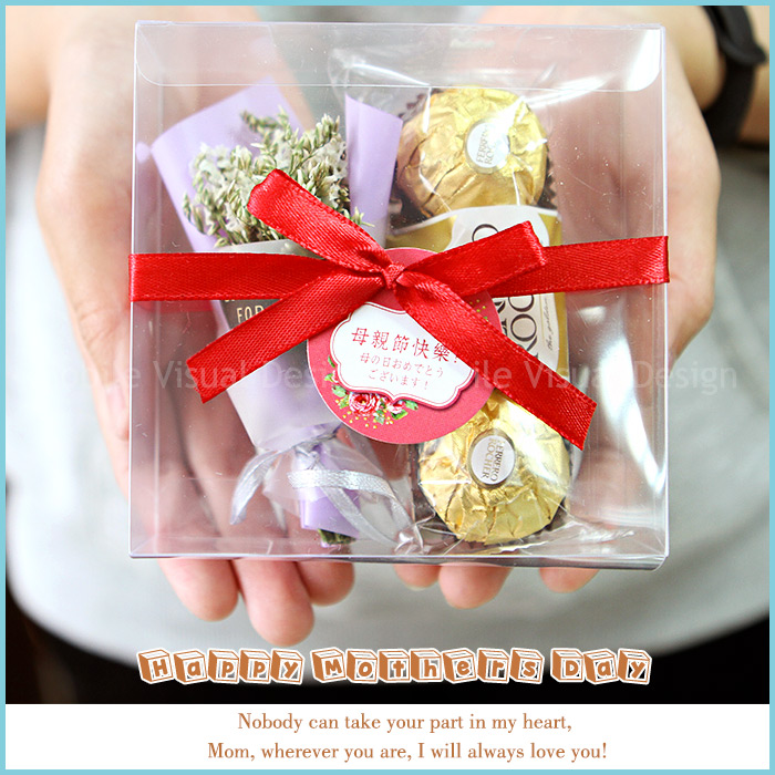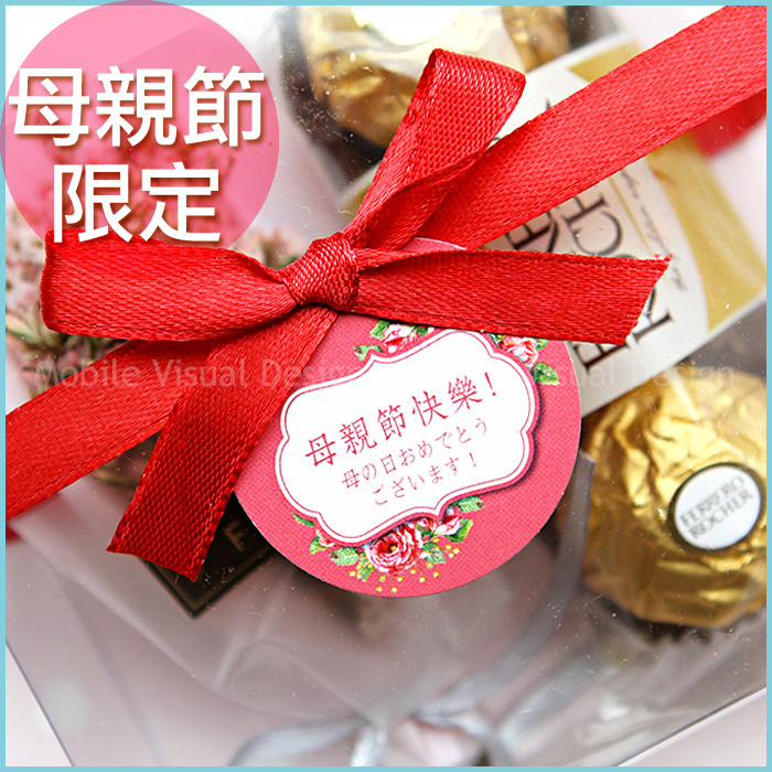 母親節禮物-金莎巧克力3顆入+迷你乾燥花束母親節快樂(透明方盒)-4色可選 (新品上市特價中) |