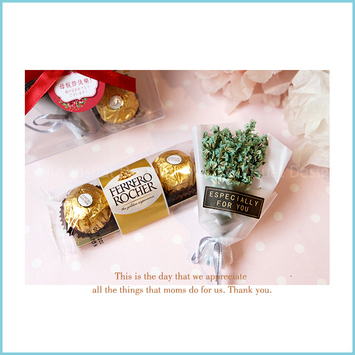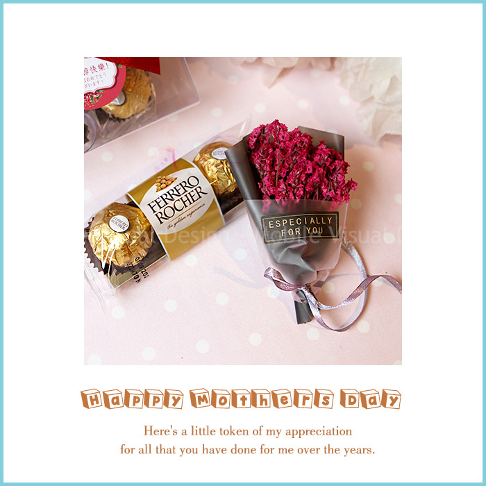 *禮盒中,有金莎巧克力X3顆+迷你乾燥花束 在這個重要的節日裡,送給您最愛的母親大人🧡 好好慰勞一下平日辛苦的媽媽,讓她度過一個充滿溫馨且歡樂的母親節! *迷你乾燥花束→每款都很經典漂亮! 珊瑚粉.櫻桃紅.風鈴紫.薄荷綠共有4色任君挑選✨ 乾燥花具有復古懷舊的感覺、容易保存。 *一般來說乾燥花可以保存1-2年以上唷🤞 (因手工製作,每款即使同色也不會一模模一樣樣喔!) *每份均有精美禮盒包裝,綁上幸福朵朵獨家設計吊牌及可愛的蝴蝶結裝飾喔! (此商品已包裝好才寄送給您唷~~)