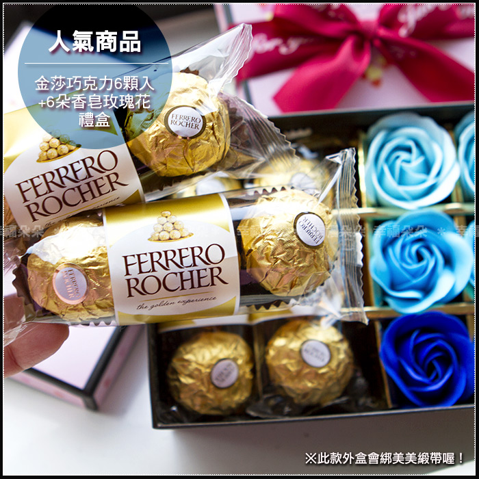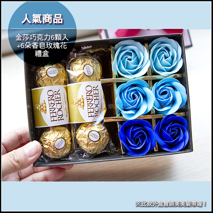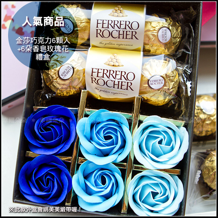 金莎巧克力6顆入+6朵玫瑰香皂花禮盒-藍色 (新品上市特價中) |