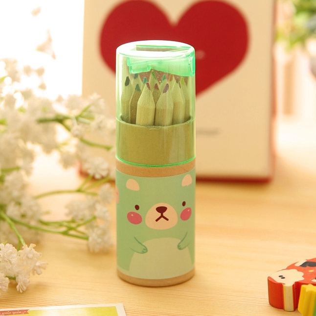 12色 彩色鉛筆 桶裝 ~很迷你喔! 自用輕巧方便攜帶 精美外型送禮也可以歐! 蓋子附有削鉛筆機設計 包裝: 1筒12支 畫筆顏色: 12色 【材質】木製 【規格】兩款可挑:綠色熊熊、粉色熊熊