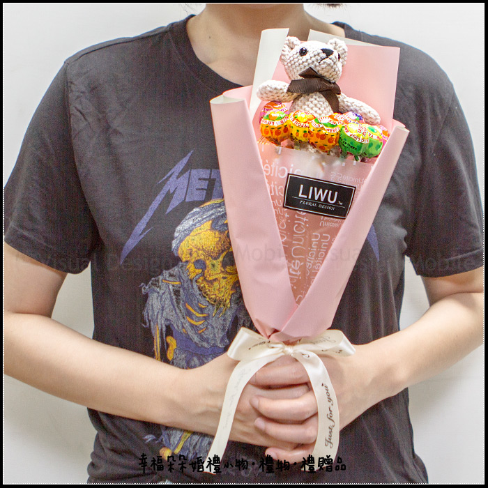 棒棒糖10支+白色小熊 畢業花束 情人節花束 C003 (新品上市特價中) |