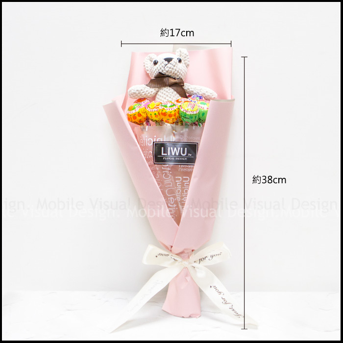 花束:總寬約17cm,總高約38cm 手工測量尺寸誤差1-3cm內屬正常範圍! |