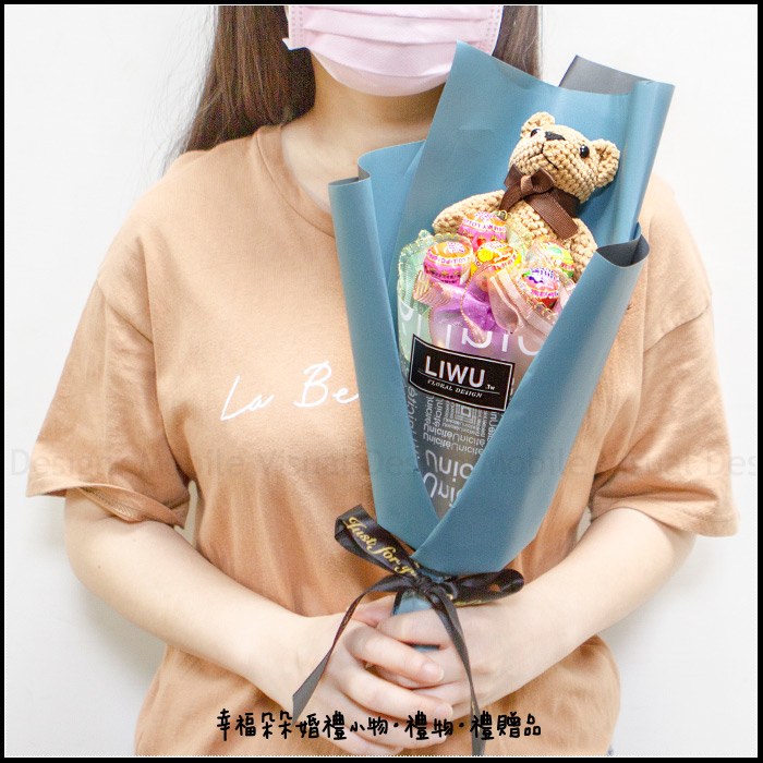 棒棒糖5支+棕色小熊 生日 情人節 畢業迷你花束 C004 (新品上市特價中) |