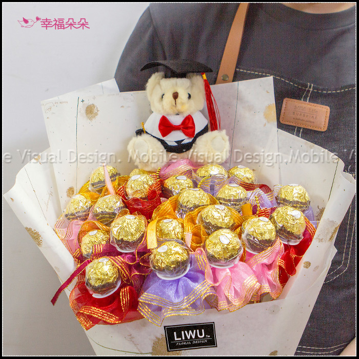 金莎20支+畢業熊生日情人節畢業花束A002(2色包裝可挑) (新品上市特價中)