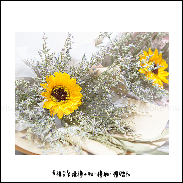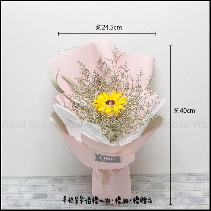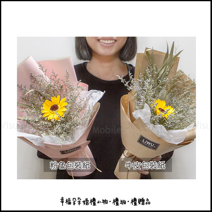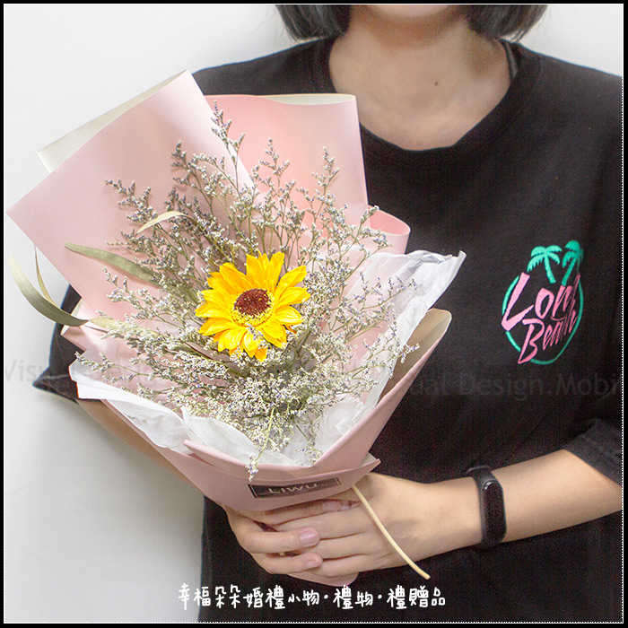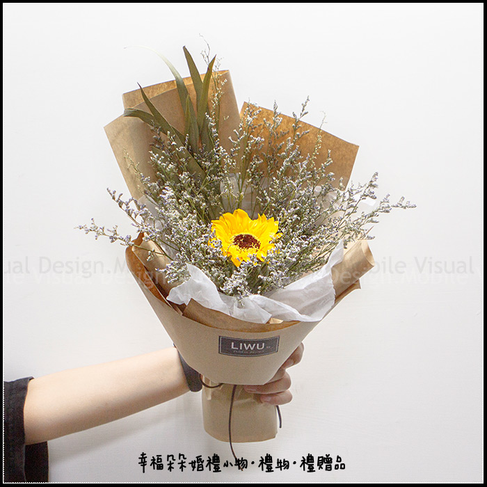 文青向日葵 乾燥花花束 畢業花束 父親節花束(單朵+情人草-2色包裝可選)S003 (新品上市特價中) |