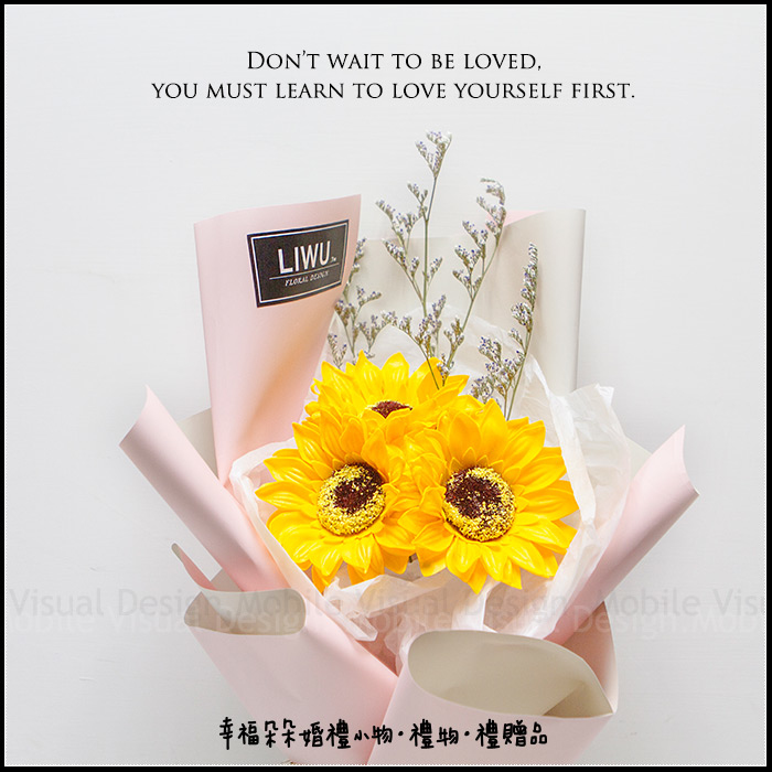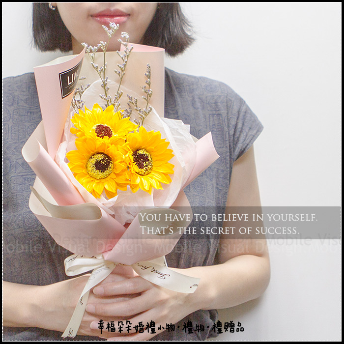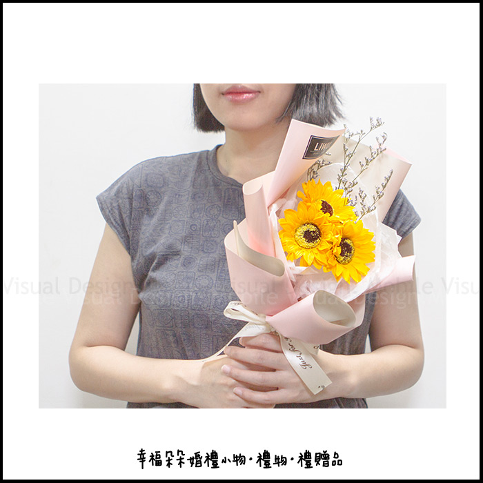 無盡的愛 向日葵花束 乾燥花花束 畢業花束 父親節花束(3朵+情人草-2色包裝可選)S004 (新品上市特價中) |