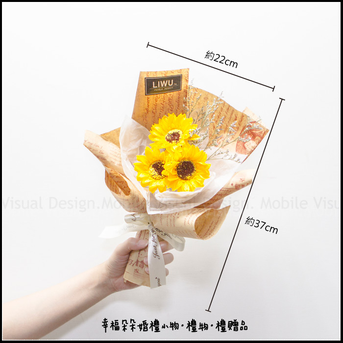 花束:總寬約22cm,總高約37cm 手工測量尺寸誤差1-3cm內屬正常範圍! |