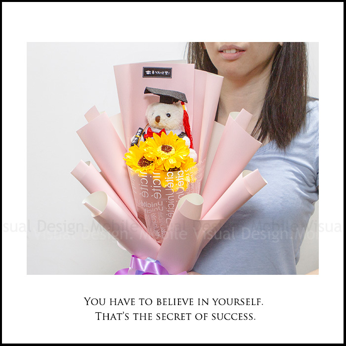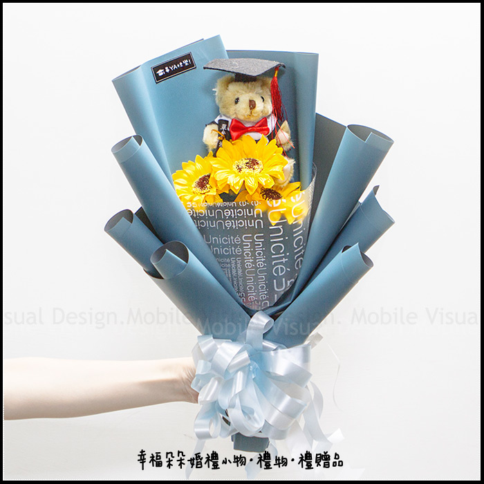 韓風 向日葵畢業熊香皂花花束(3朵+1支畢業熊-包裝2色可選)S005 (新品上市特價中) |