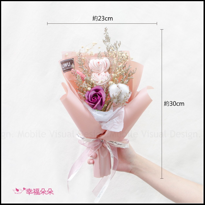 花束:總寬約23cm,總高約30cm 手工測量尺寸誤差1-3cm內屬正常範圍! |