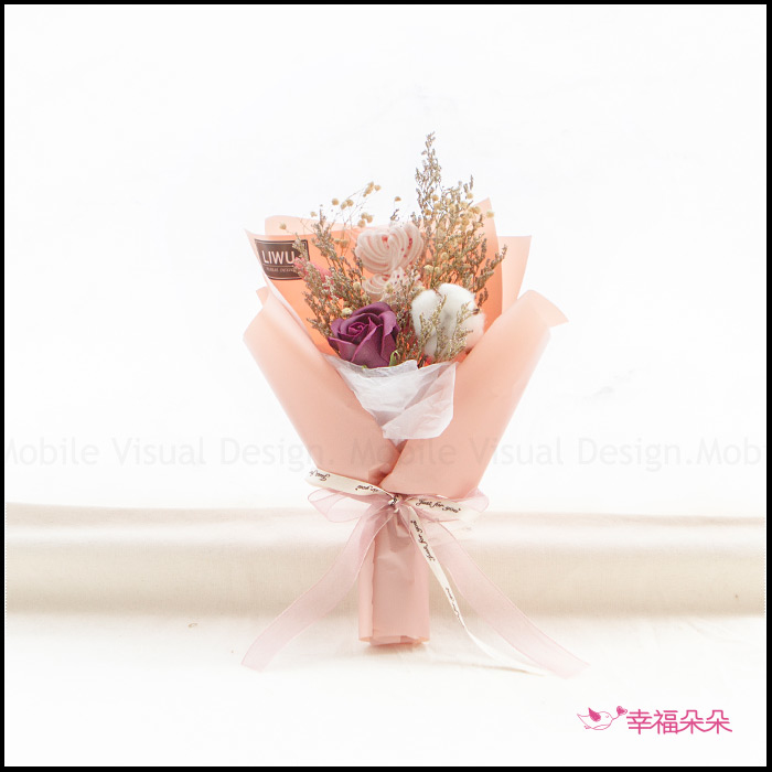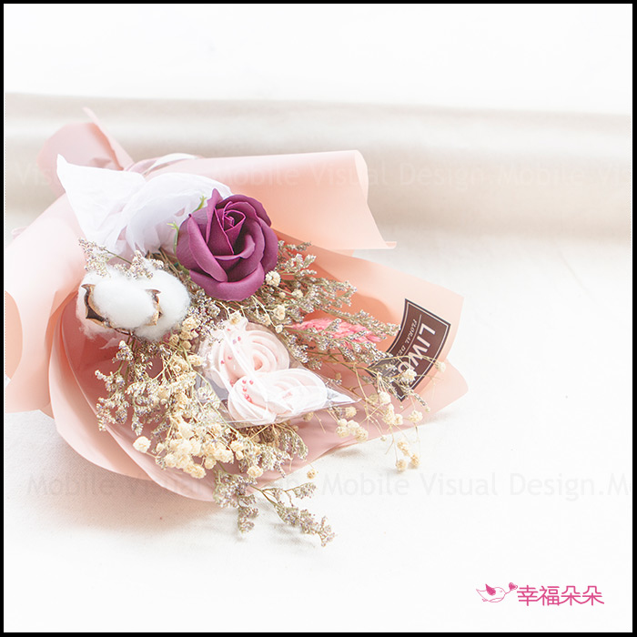 每組花束均有 1支串串心馬林糖 + 1支兔尾草 + 1朵玫瑰香皂花 + 1朵棉花 + 數支滿天星及情人草,作為生日送女友或任何活動送親友都絕對是超棒的禮物喔。 玫瑰香皂花會散發淡淡香氣可以拿來當室內擺飾唷! (適合拿來作室內擺飾增加氛圍感,較不適合拿來洗手用) *採接單方式製作販售。 為讓商品完整地送至您手中,我們會做好保護,再做配送喔! (此商品已包裝好才寄送給您唷~~) |