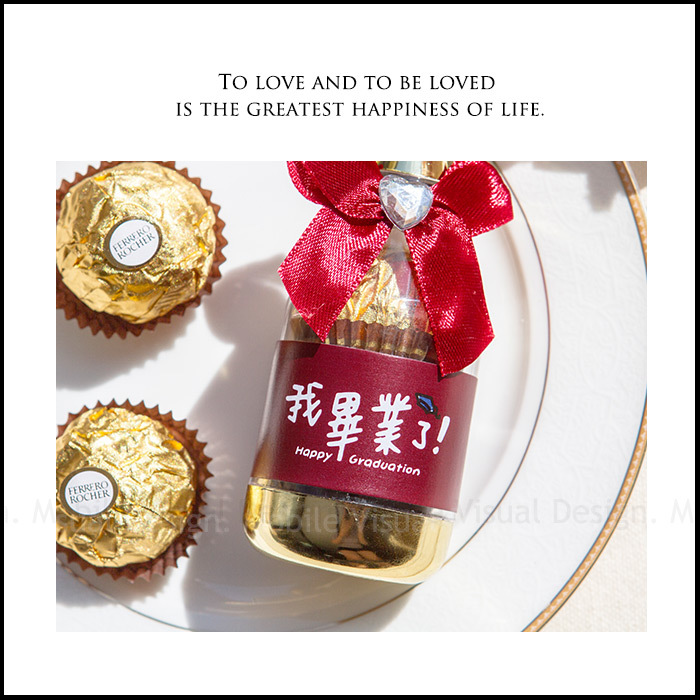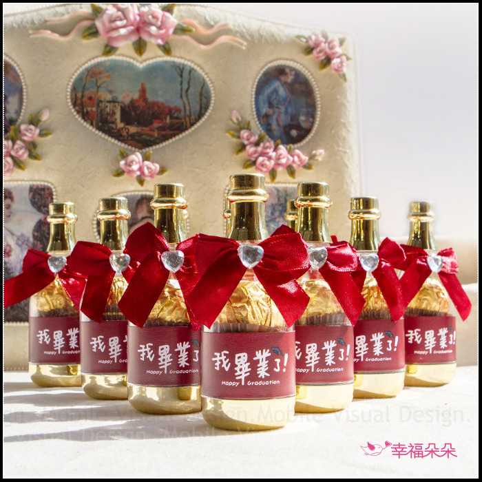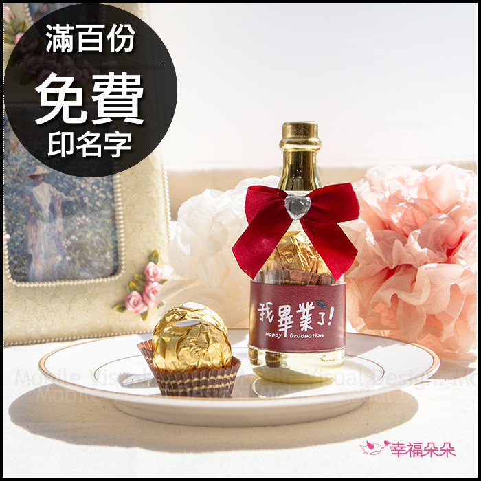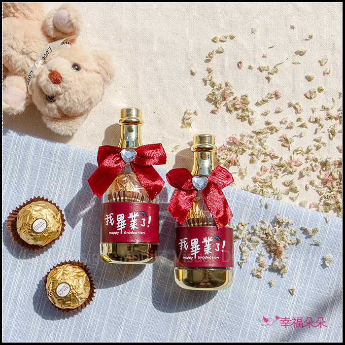 畢業禮物 香檳糖果瓶(金莎2顆入)-滿百份免費印名字 (新品上市特價中) |