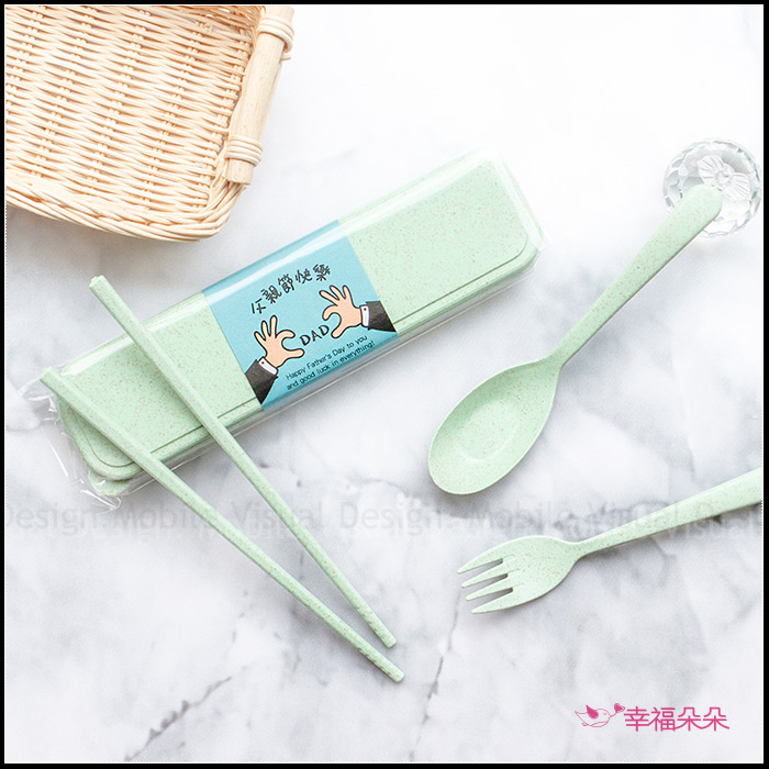 父親節禮物贈品-父親節快樂-(有包裝)小麥桔梗環保筷餐具三件組(藍綠米3色可挑) (新品上市特價中) |