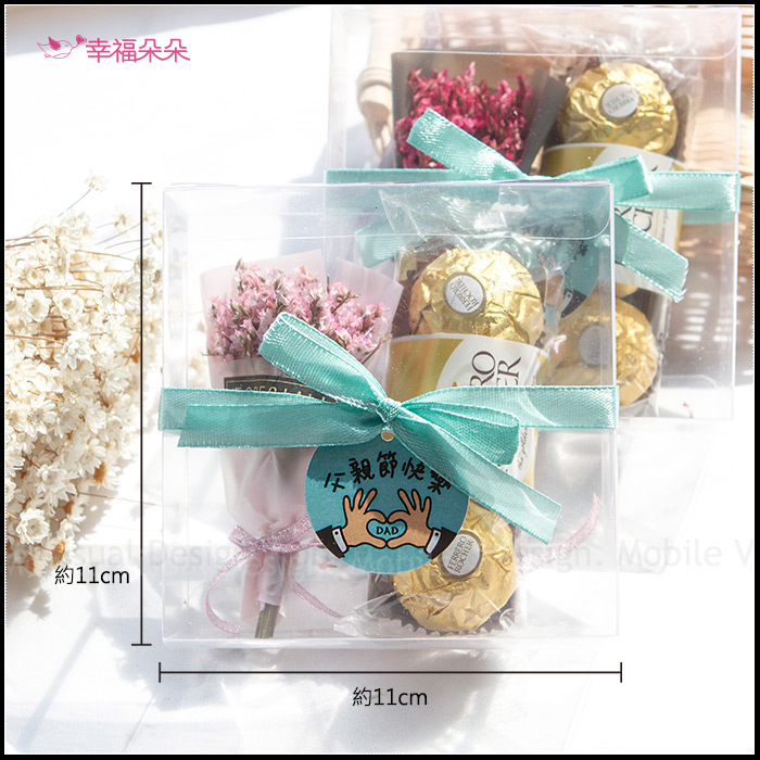 父親節禮物贈品 金莎巧克力3顆入+迷你乾燥花束(透明方盒)-4色可選 (新品上市特價中) |