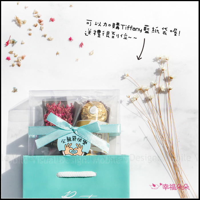 乾燥花具有復古懷舊的感覺、容易保存。 一般來說乾燥花可以保存1-2年以上唷🤞 (因手工製作,每款即使同色也不會一模模一樣樣喔!) 每盒都繫有幸福朵朵獨家設計精美吊牌,訂滿100盒還可以免費印文字喔!(若有需要,請在下單時就備註好要印的文字喔!沒有備註就會用公版吊牌喔!) 保存方式:金莎巧克力存放於乾燥陰涼處即可 保存期限:至少半年以上(最佳賞味期2~3週內) 您也可以加購Tiffany藍小手提袋給搭配禮物盒送禮喔🌻