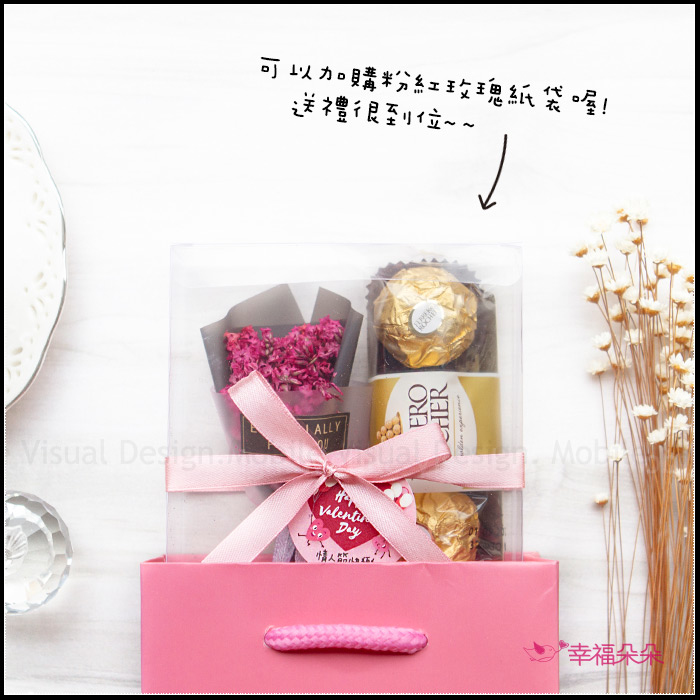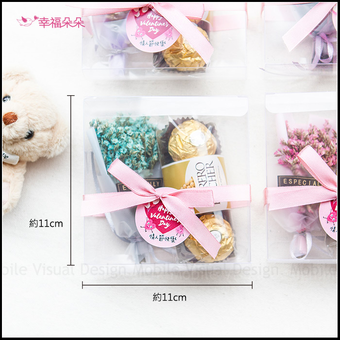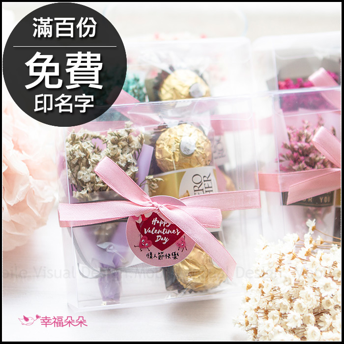 情人節禮物贈品 金莎巧克力3顆入+迷你乾燥花束(透明方盒)-4色可選 (新品上市特價中) |