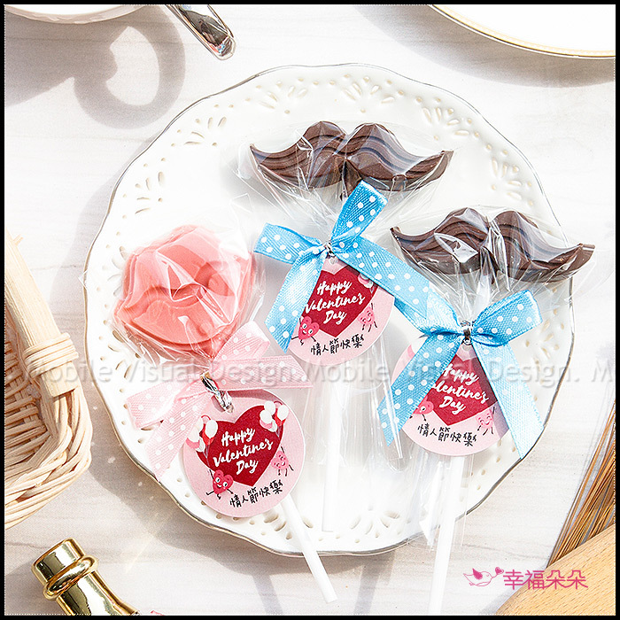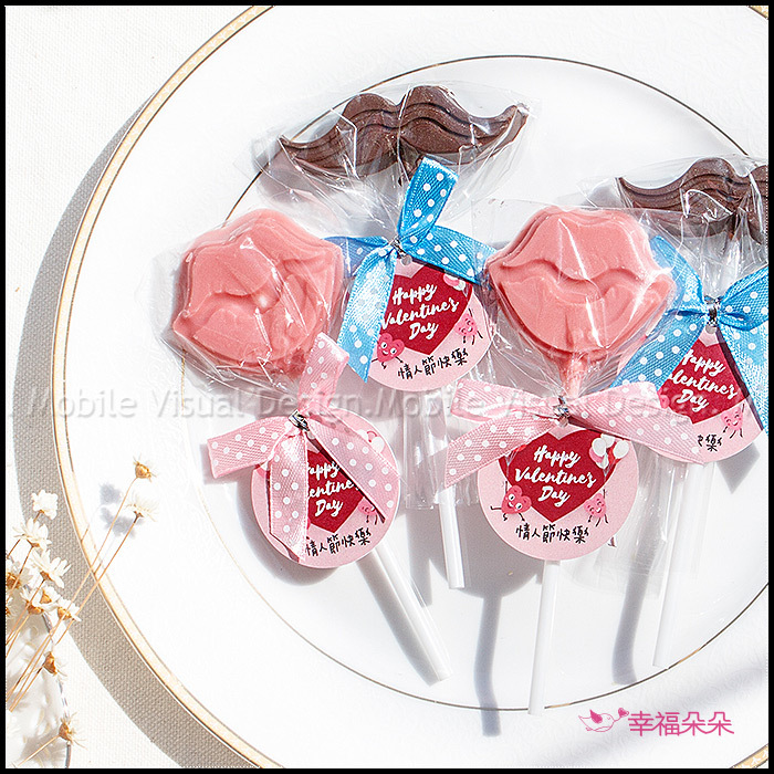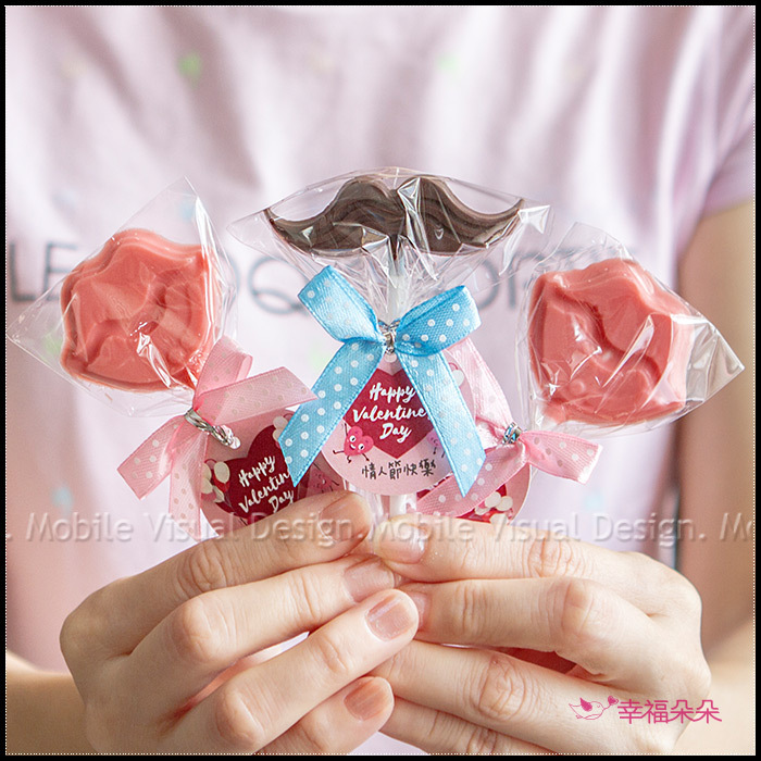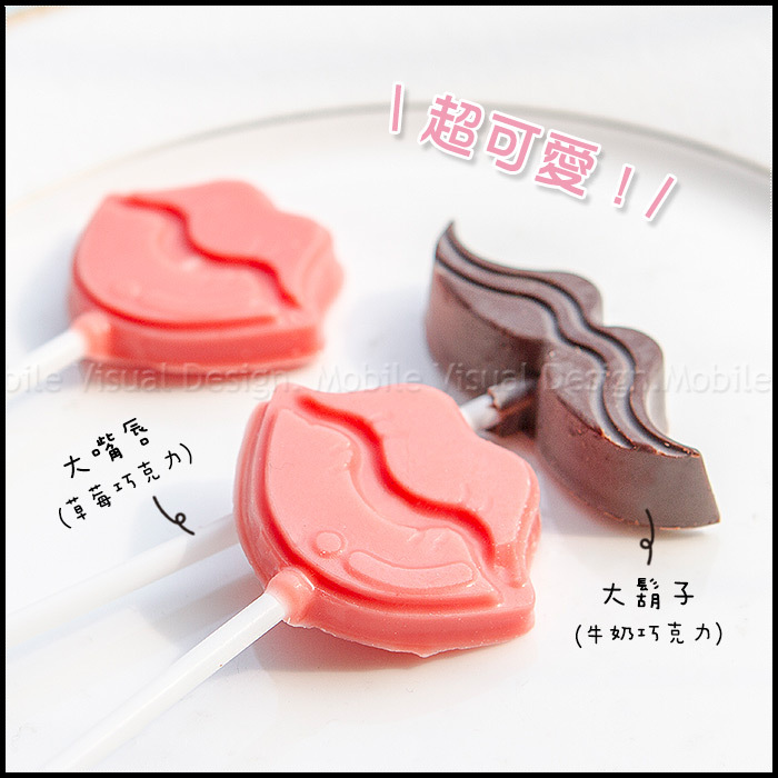 共有2款造型可挑:小鬍子(牛奶巧克力)、小嘴唇(草莓巧克力)