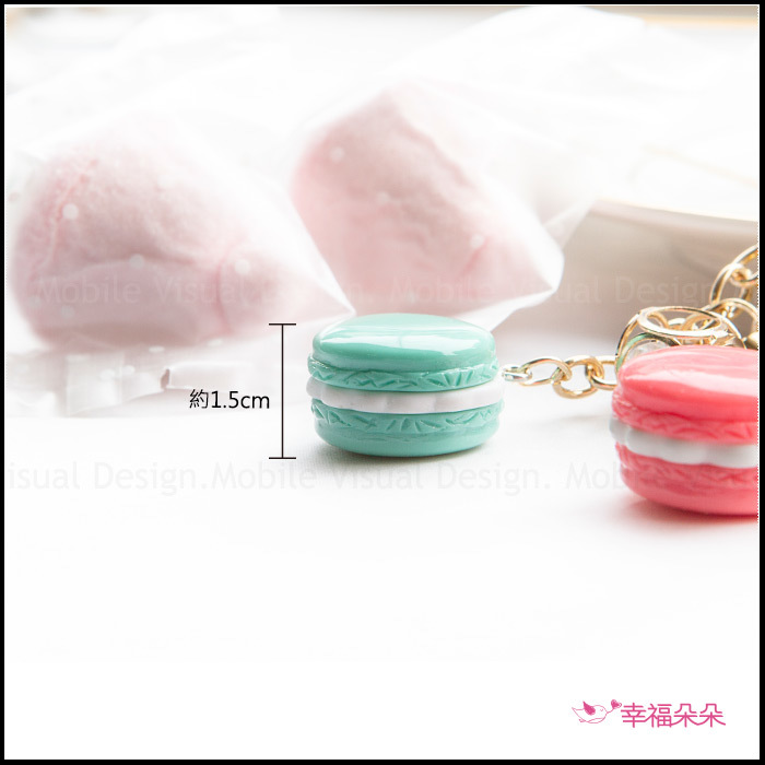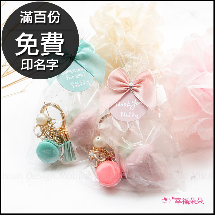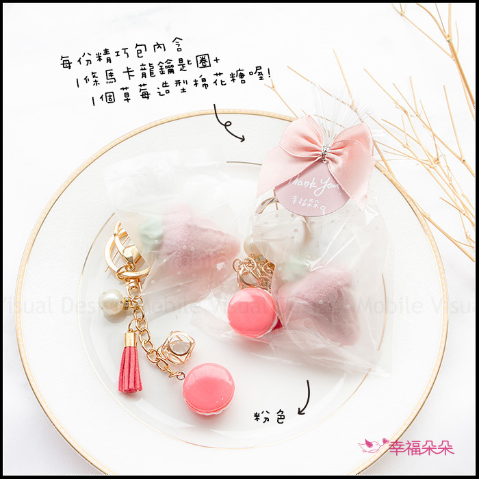 幸福朵朵 精巧包裝-馬卡龍鑰匙圈+磨砂袋草莓棉花糖(2色可挑) (滿百份免費印名字) (新品上市特價中)