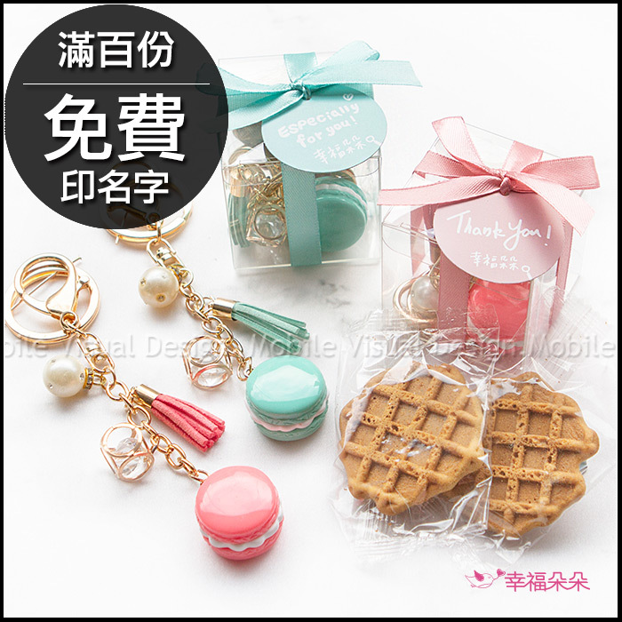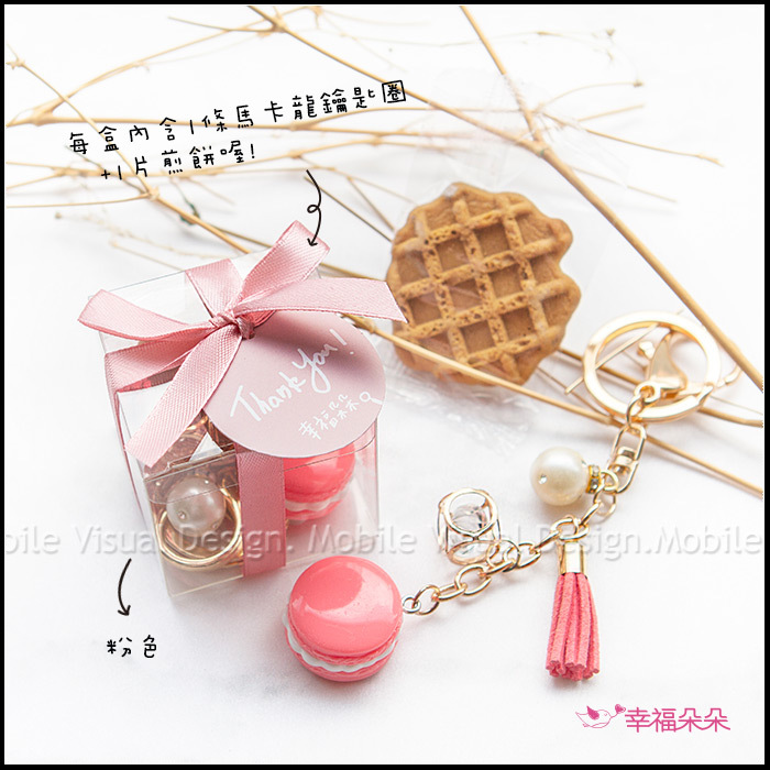幸福朵朵 透明盒裝-馬卡龍鑰匙圈+煎餅(2色可挑)(滿百份免費印名字) (新品上市特價中)