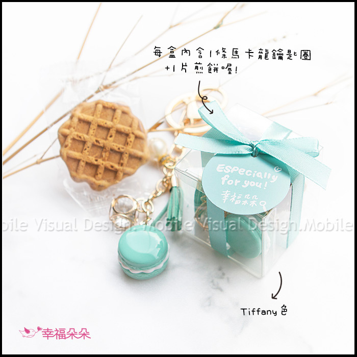 每盒小禮盒均有:1個馬卡龍鑰匙圈 + 1片煎餅